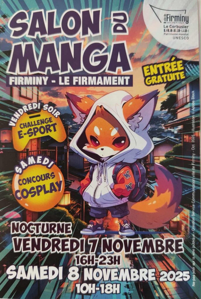 Évènement inscrit depuis de nombreuses années dans l’agenda de la Ville de Firminy, le Salon du Manga se déroulera cette année le vendredi 07 Novembre, de 16h à 23h, et le samedi 08 Novembre de 10h à 18h. Entrée gratuite pour découvrir l’univers du Manga, en famille, avec de nombreux stands et animations dont le Challenge E-Sport et le concours Cosplay. Pour présenter le Salon du Manga, nous vous proposons d’écouter dans l’Évènement de la Semaine de l’émission Comme un Lundi, aujourd’hui à 10h, Julien Luya, maire de Firminy, Mohamed Benmessaoud, directeur du pôle communication culture évènementiel de la ville, ainsi que Mathis et Noann, jeunes bénévoles organisateurs.